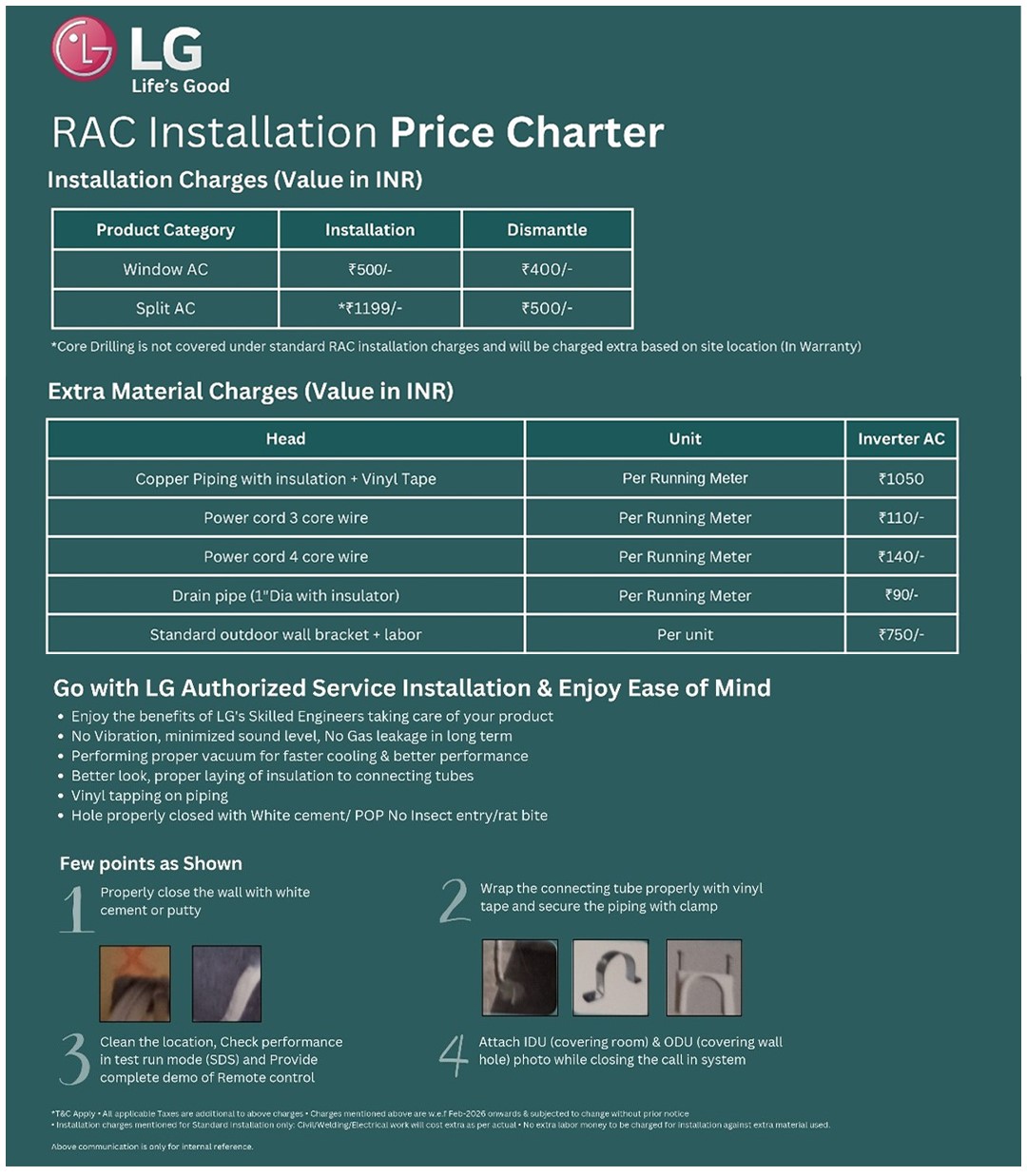 Fore More Information pls visit : https://www.lg.com/in/support/rac-installation-price-charter/